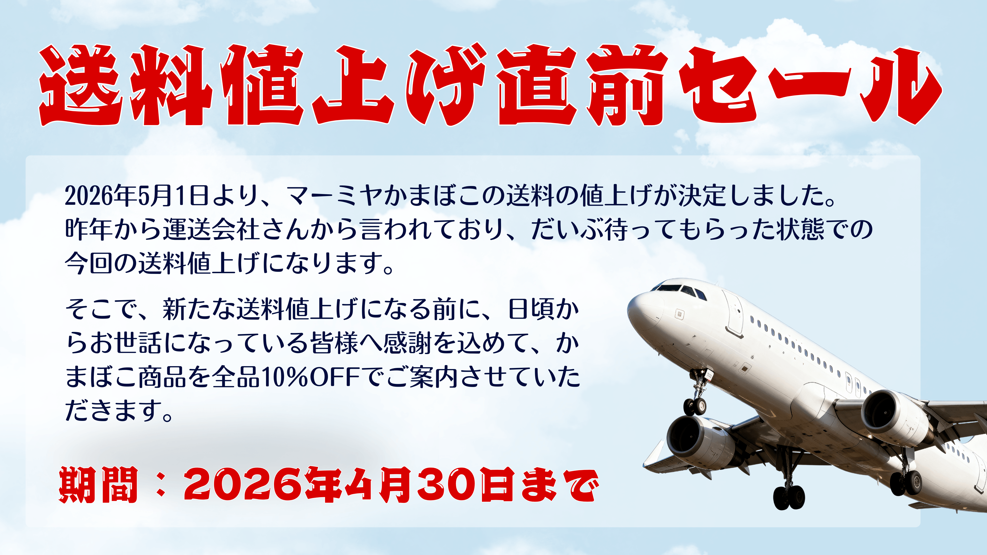 - 送料値上げ直前セール!かまぼこ商品全品10%Off(2026.04.10)